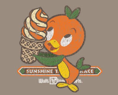 Well into the 1990’s the birds popularity was quickly fading. He was becoming less associated with the citrus industry and becoming more noticeable as a state of Florida character. His face was now being seen on Florida t-shirts and other merchandise throughout the state. But you can never hold a good orange bird back. In the early 2000″s the bird began to spark a re-interest. His song could be heard on-flight with Song Airlines and around 2004 Tokyo Disney began producing it’s own Orange Bird merchandise. Recently he has even popped back up in Walt Disney World with a new t-shirt and his own Vinylmation figure. It’s good to know that Disney hasn’t completely forgotten this (as far as I know) first non-Disney character and maybe one day (fingers crossed) might bring him back into the parks, but until then just “Think funny thoughts or sunny words”, and next time your at the Sunshine Tree Terrace grab one of those Citrus Swirls and think back to those days when the Florida Orange Bird would come out to greet you.