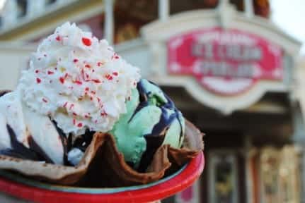 If you prefer soft serve, try the waffle sundae from Sleepy Hollow in Liberty Square. Infused with pumpkin, the waffle is dusted with cinnamon sugar, soft-serve ice cream and holiday sprinkles.