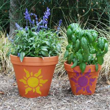 4 Sponge yellow acrylic paint onto pot with brush. (Feel free to get creative with the colors.)