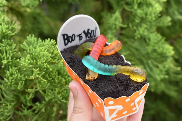 - Pecos Bill Tall Tale Inn and Café will offer Worms and Dirt, a chocolate gravestone with chocolate cake and chocolate mousse with a chocolate glaze topped with Oreo crumbs, and gummy candy.