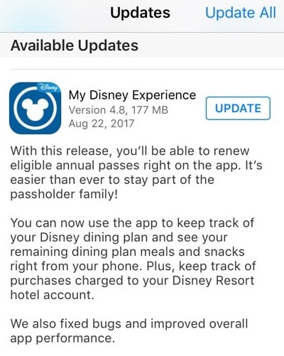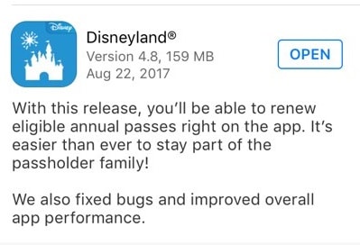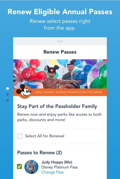 The Disneyland app was also updated last night! Walt Disney World and Disneyland Annual Passholders will be excited to see that last night’s updates now give them the ability to renew their eligible annual passes right there in the My Disney Experience and the Disneyland apps! (You will still have to stop at a ticketing booth or Guest Relations to activate your renewed AP and to pick up your AP perks booklet and card.)
