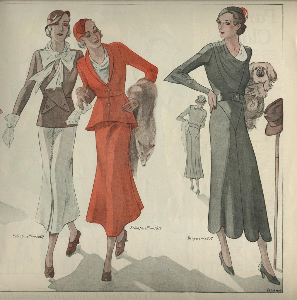Dresses in the 30s left behind square or boxy shapes in the 20s Dresses were more flattering. Flowy sleeves and large collars are also a staple from this time. Cotton was not so popular as raylon crepe and silk were center stage. If you’re into wide cuff and high waisted pants, then guys, the 30s are for you! Fedoras and patterned ties also characterized the 30s.