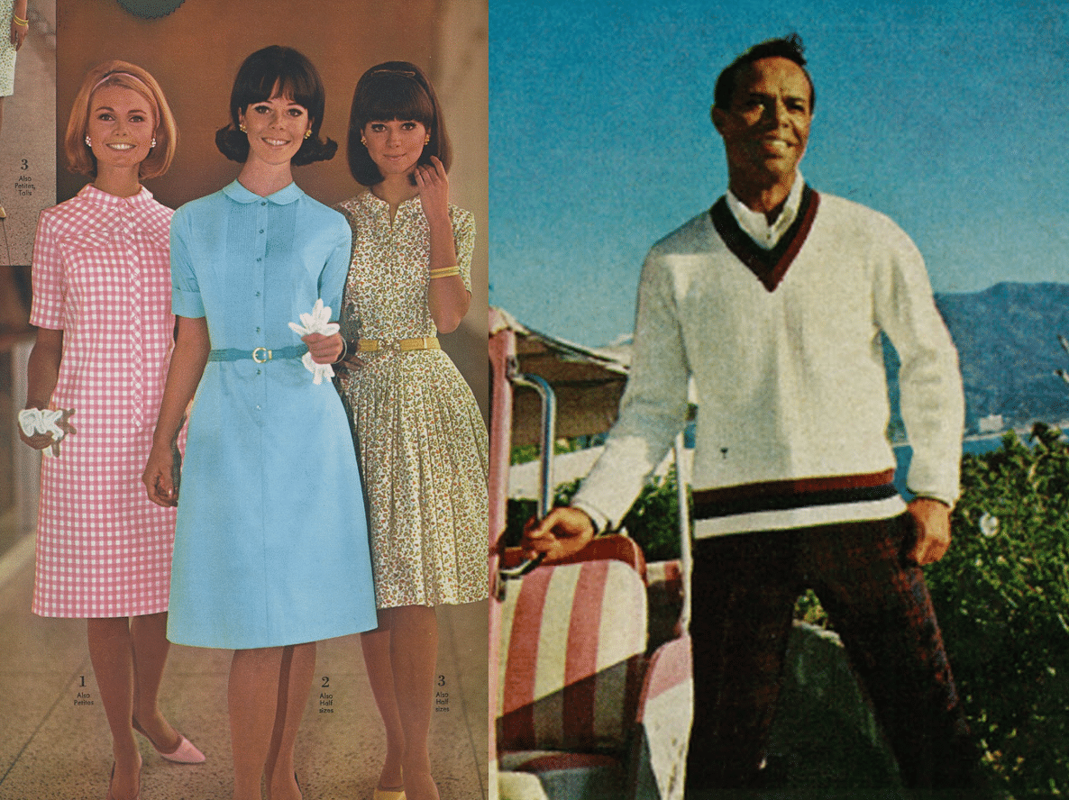Things started to change in the 1960s. For the women, the early 60s were similar to the styles of the late 50s, the mid 60s brought that modern shift dress, Mad Men style, and the late 60s are the groovy flower child style. Each one is fun and dapper, but different. For the men, skinny ties, sweaters, and single button suits were all the rage.