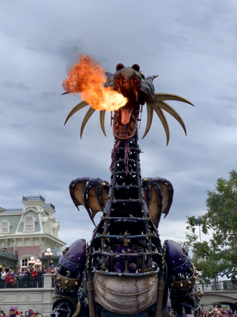 So grande, so stunning, she makes such a presence in the parade. I didn’t realize how much I missed her, until she was back. The music gets you excited. Will she blow fire? The music builds up and then it happens, her head goes high, and then she breathes fire and the crowd cheers!