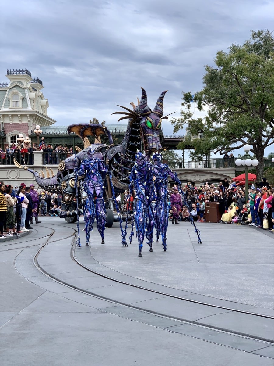 When I saw The Main Street Mouse post that Maleficent was back this past Friday, I was so excited and had to get over to the park to see her for myself. She is my absolute favorite part of The Festival of Fantasy Parade. When the parade music started I got so excited, like it was the first time seeing this parade.