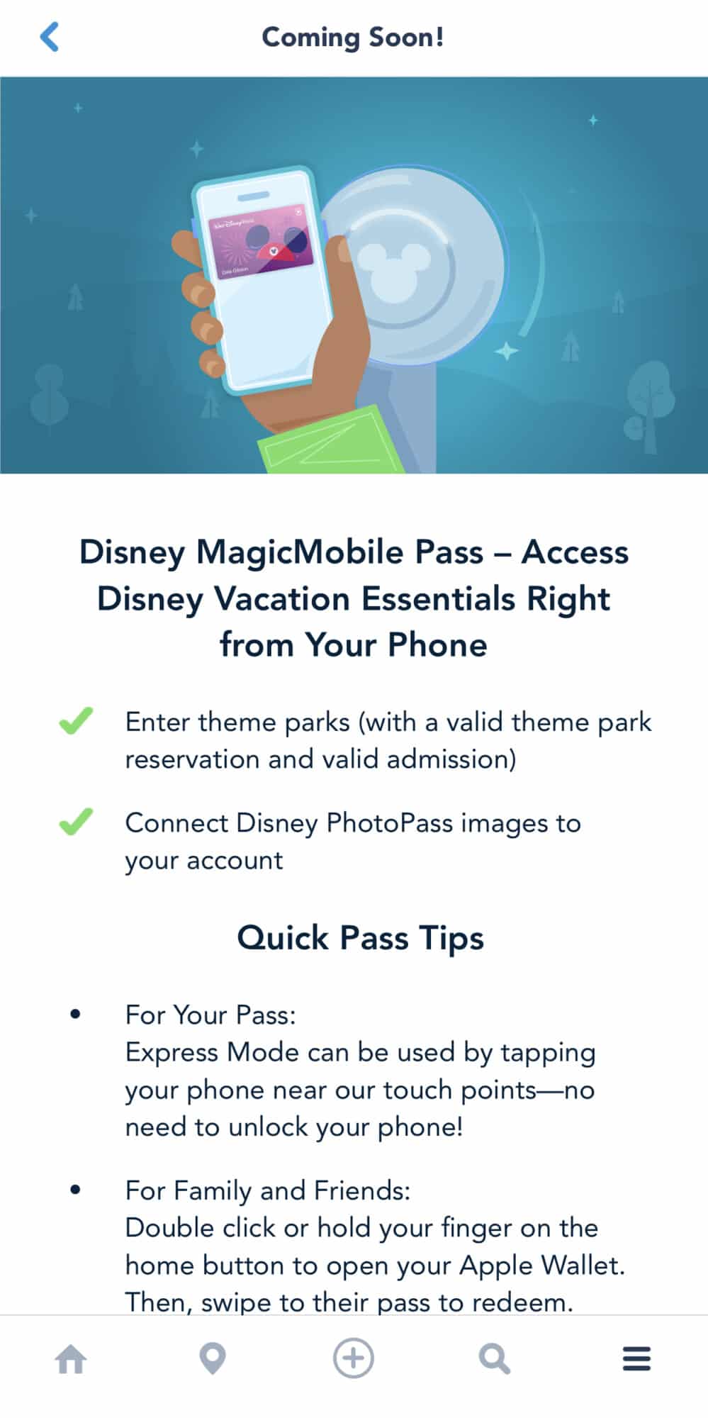 Announced less than two weeks ago, the MagicMobile Pass menu can now be seen in the My Disney Experience app. The new button in the app is only the beginning of the launch to the new service, which Disney says will be fully available starting later this year.