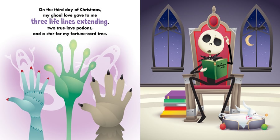 Renowned Imagineers Steven Davison and Carolyn Gardner’s text turns turtle doves and French hens into floating candles and true-love potions. When you combine that with Maruyama’s adorably spooky art style, it’s the perfect spine-chilling spin on Christmas traditions! We’re giving you an exclusive first look at what happens when two holidays collide, and an interview with Jerrod himself.