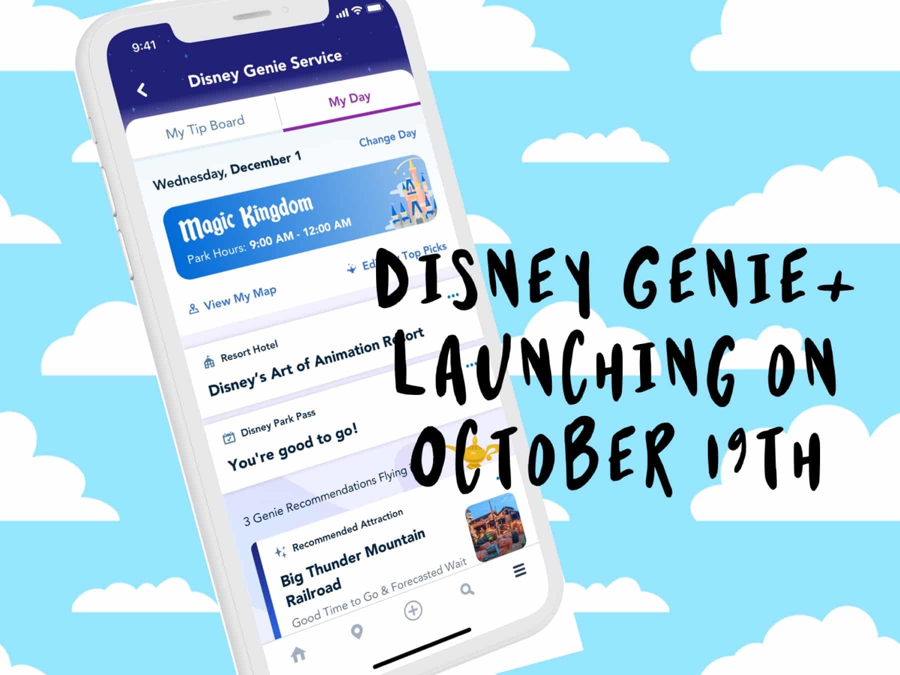 A: Launching Oct. 19 at Walt Disney World Resort, Disney Genie is a complimentary and convenient new digital service in the My Disney Experience app designed to create your best Disney day. Disney Genie service will maximize your park time, so you can have more fun. It includes a personalized itinerary feature that will quickly and seamlessly map out an entire day.