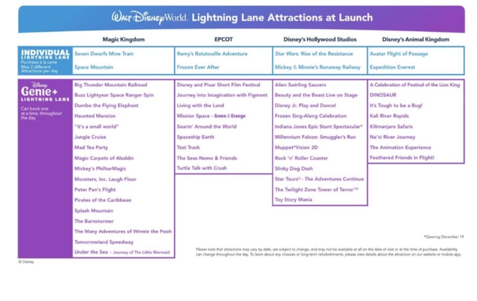 With this launch, we’ll also be introducing the Lightning Lane entrance. Available for purchase through our Disney Genie+ add-on at more than 40 attractions – or individually, “a la carte” at some of our most highly demanded attractions – the Lightning Lane entrance can save you time waiting in line. Click below for a first look at the list of current attractions with Lightning Lane entrances and info on pricing.