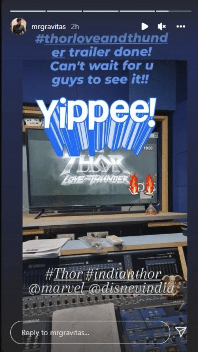 According to a recent Instagram post, Gaurav Chopra, who voices Thor in the Hindi dub version of Love and Thunder, has just finished working on the movie’s trailer. While the performer did not provide a solid release date for the promotional video, the fact that he’s wrapped his part has fans speculating that it may finally drop in the near future. The image Chopra shared features the film’s logo on a monitor in what is presumably a recording booth.