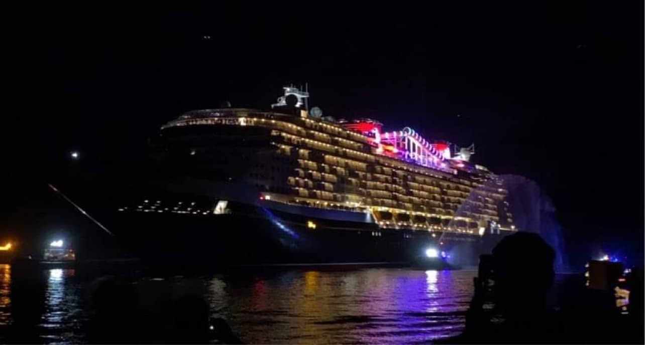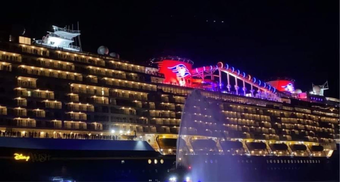 The 1,121 foot ship sailed by being completely lit up in all its magical glory, complete with spotlights beaming from the top deck. The crew was lined up on various decks to wave and cheer at the fans as they headed “home” for the first time. As it approached the dock, the Wish gave one blast from its horns with a melodic sound made famous by Disney Cruise Line. Even in the dark, this ship looks breathtaking, and I am sure everyone watching it glide by was thinking the same thing: “Man I can’t wait to get onboard.” Next week the Wish is scheduled to have her “christening” cruise for media and travel professionals, which TMSM will be on to cover the new ship! Once again, Disney has set the bar for cruising luxury and the Wish is here to make all your vacation wishes come true!