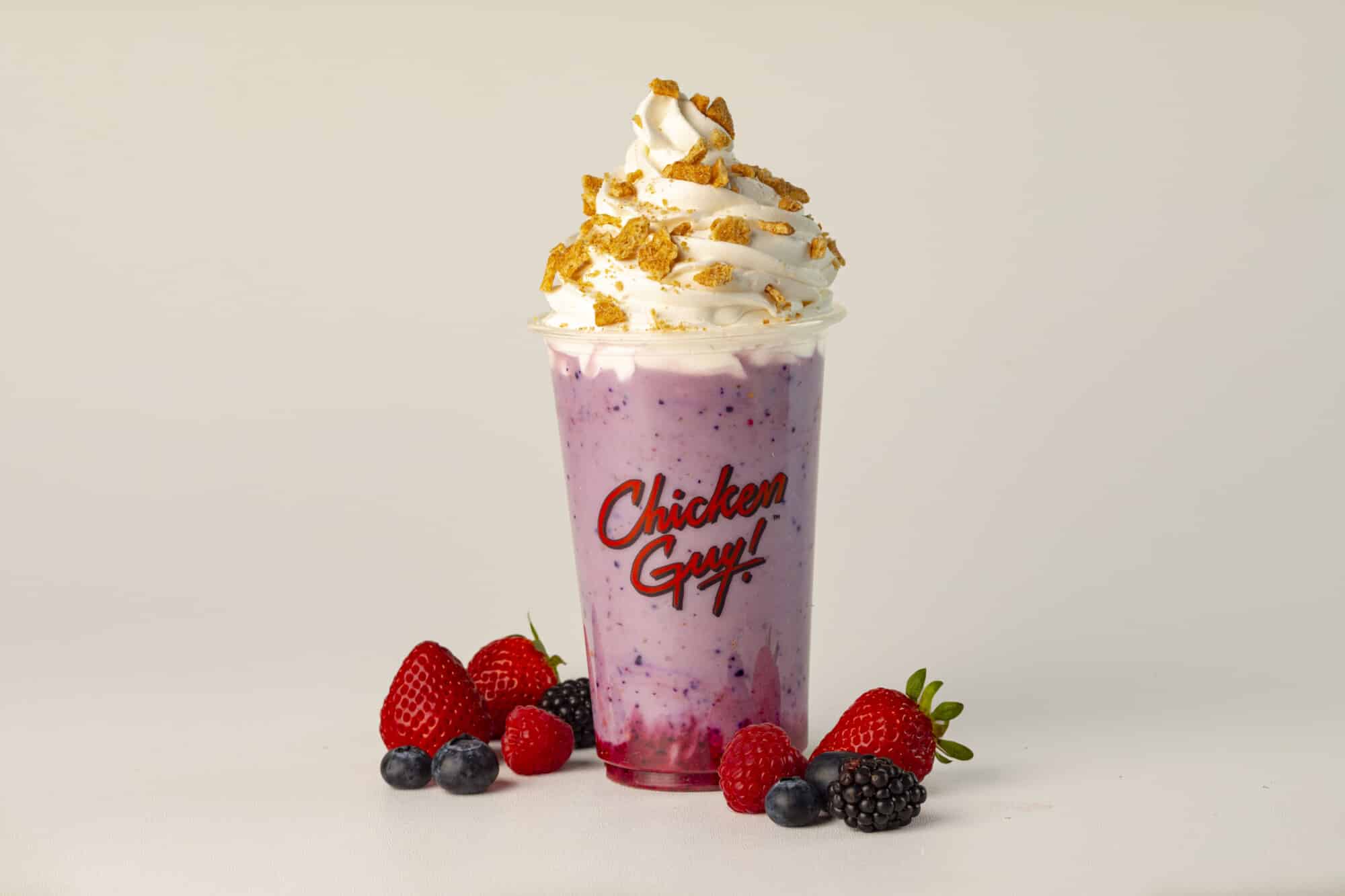 Chicken Guy!, the fast-casual restaurant by TV personality and celebrity chef Guy Fieri has debuted a sweet treat available for a limited time at locations nationwide. Just in time for spring, the restaurant is offering the new Huckleberry Shake, made with creamy, hand-spun vanilla soft serve and mixed berry puree, topped off with fresh whipped cream and Cinnamon Toast Crumble.
