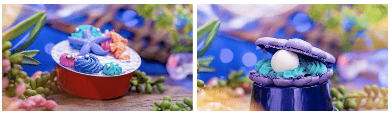 Check out the new Purple Pineapple Shell Macaron, a purple macaron filled with blue pineapple buttercream and a chocolate pearl available at Edelweiss Snacks, and the Mermaid Strawberry Cake at the Cappuccino Cart, now available until May 29, while supplies last!