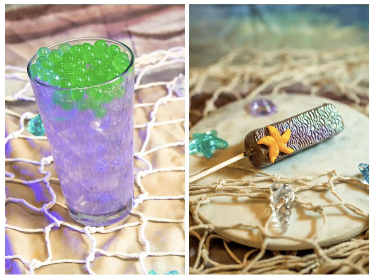 Bubbles at Sea, a Gold Peak sweet green tea, lemon juice, pineapple and guava topped with boba pearls, and a splash of shimmer is available at multiple locations. At Disney Springs, swing by The Ganachery to try a new sweet treat: The Little Mermaid Sea Salt, Caramel and Chocolate Pop, a caramel sea salt pop with ocean fondant decor!