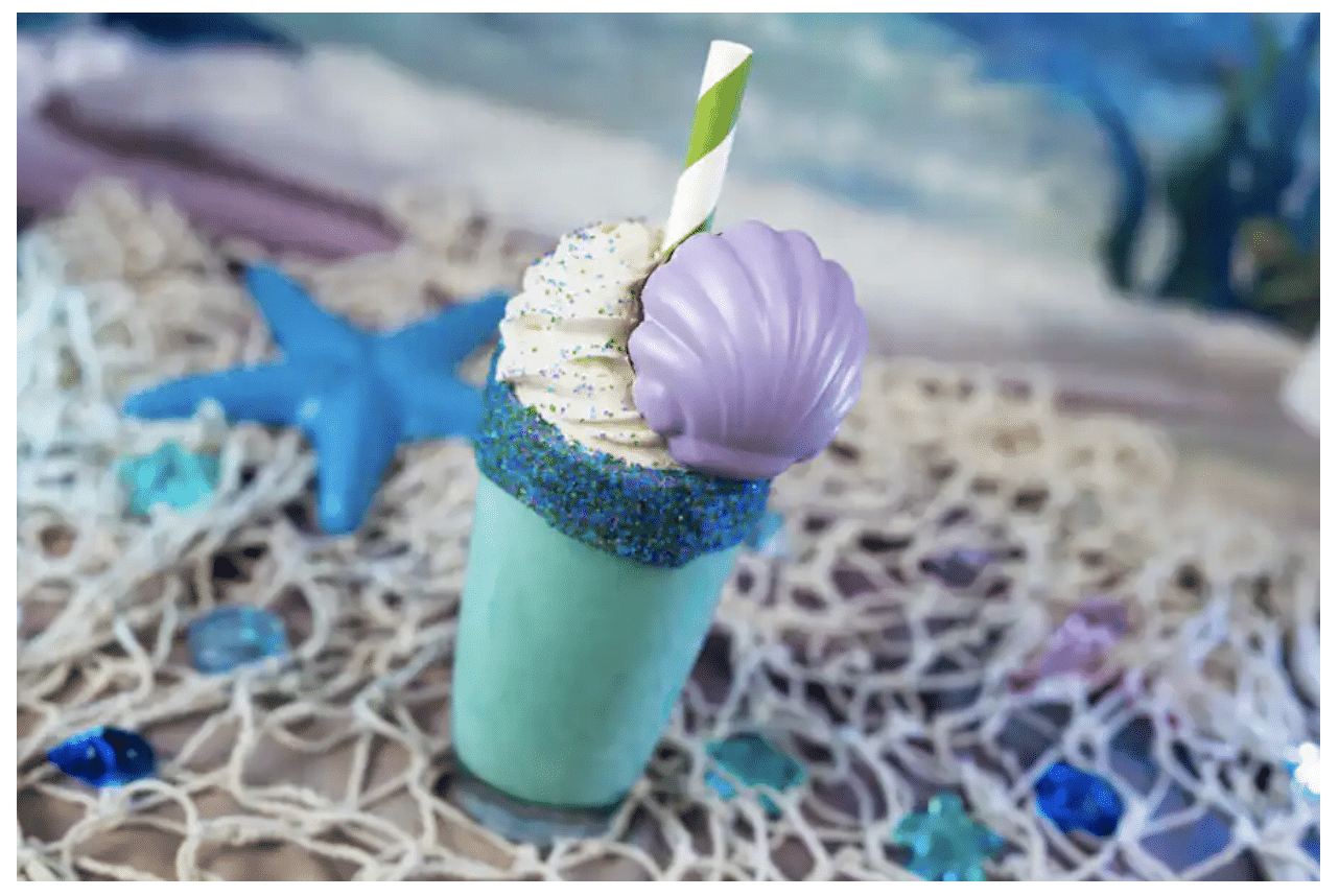 At Disney’s Hollywood Studios, check out The Little Mermaid Donut Milk Shake, a mango-guava-ginger milkshake topped with whipped cream and a pineapple-mango seashell donut, available at Hollywood Scoops.