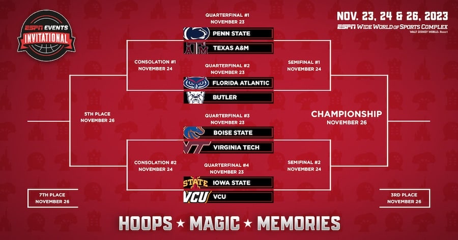 Pass the gravy and the basketball! First round matchups have been announced for the 2023 ESPN Events Invitational taking place Thanksgiving weekend, Nov. 23-26 at Walt Disney World Resort.