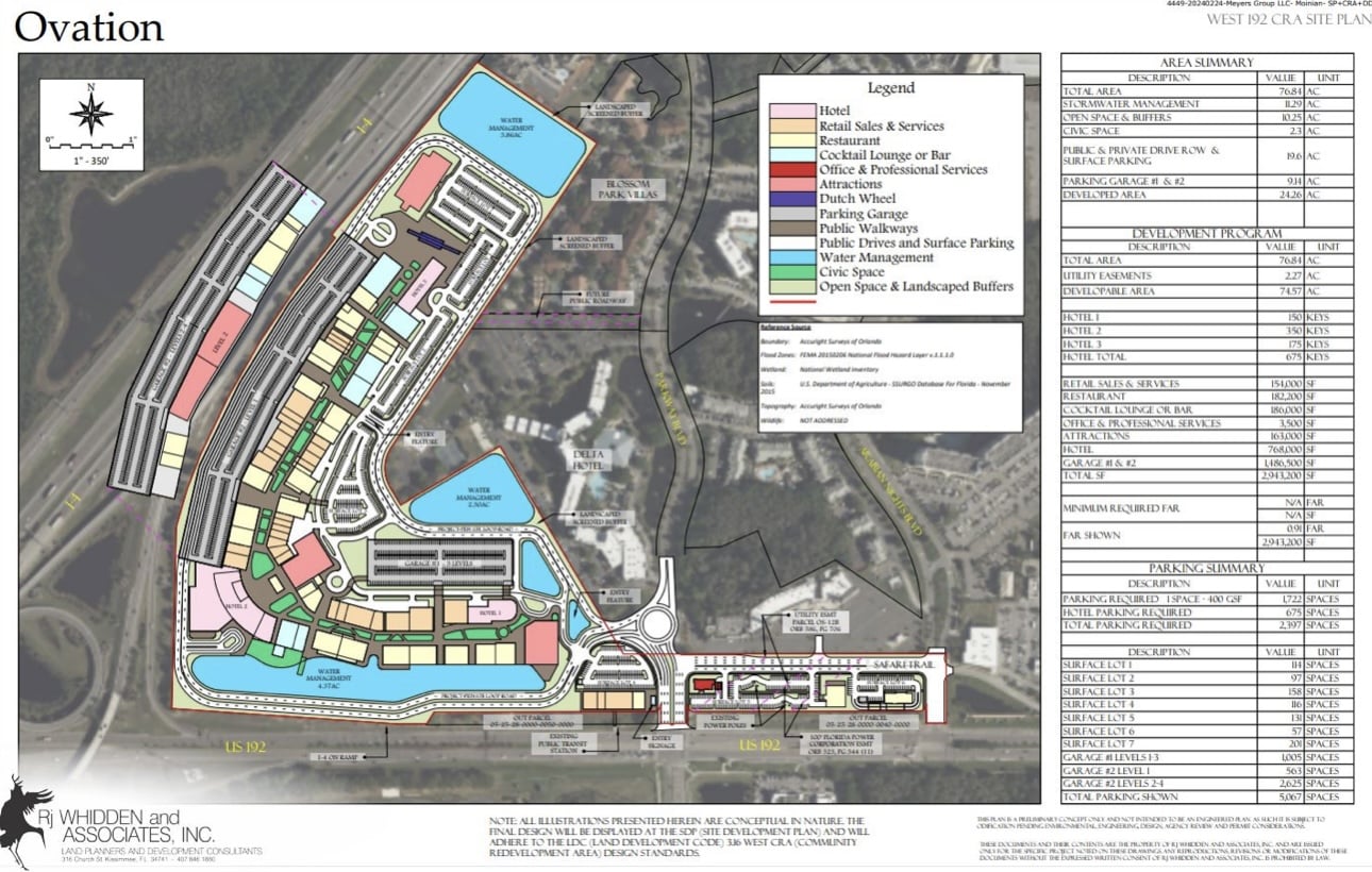 The Meyers Group submitted a Community Development Application in Osceola County earlier this month for the “Ovation” project, a 77-acre entertainment district which includes hotels, retail shops, restaurants, cocktail lounges or bars, offices, a Ferris wheel, and other attractions, according to documents obtained by our friends at FOX 35.