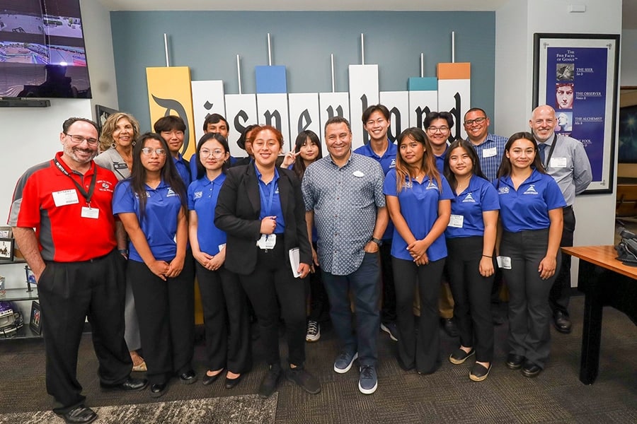 As part of the resorts Community Workforce Development Initiative Ken Potrock meets with students from Anaheim Union High School through the AIME Anaheims Innovative Mentoring Experience Program which Disneyland Resort has participated in since 2019