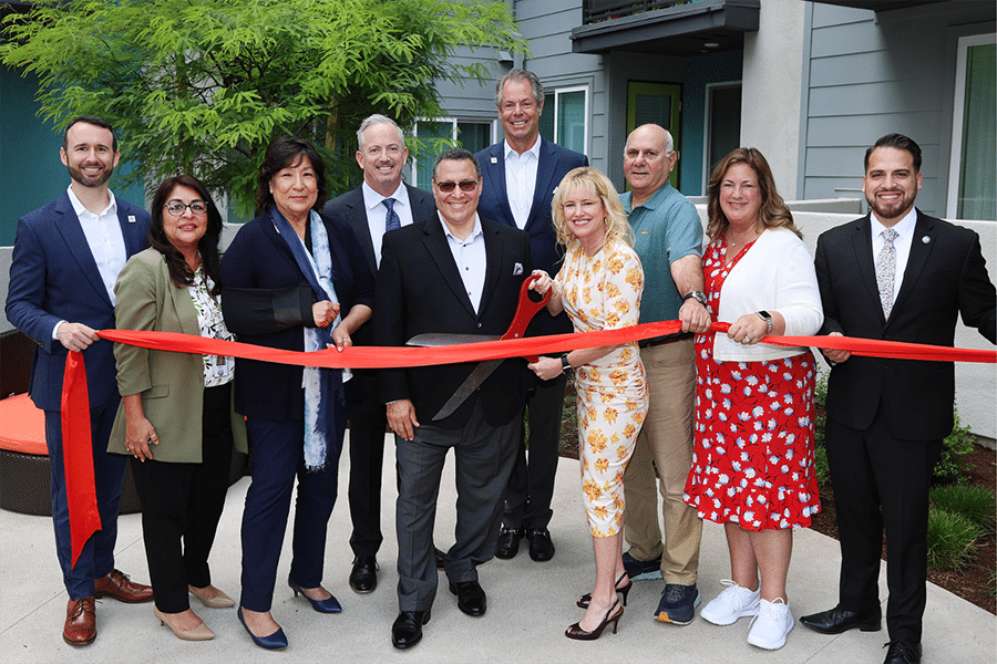 Ken Potrock joins officials from the City of Anaheim and Jamboree Housing at the opening of Finamore Place the citys newest affordable housing development which opened with support from Disneyland Resort in 2023