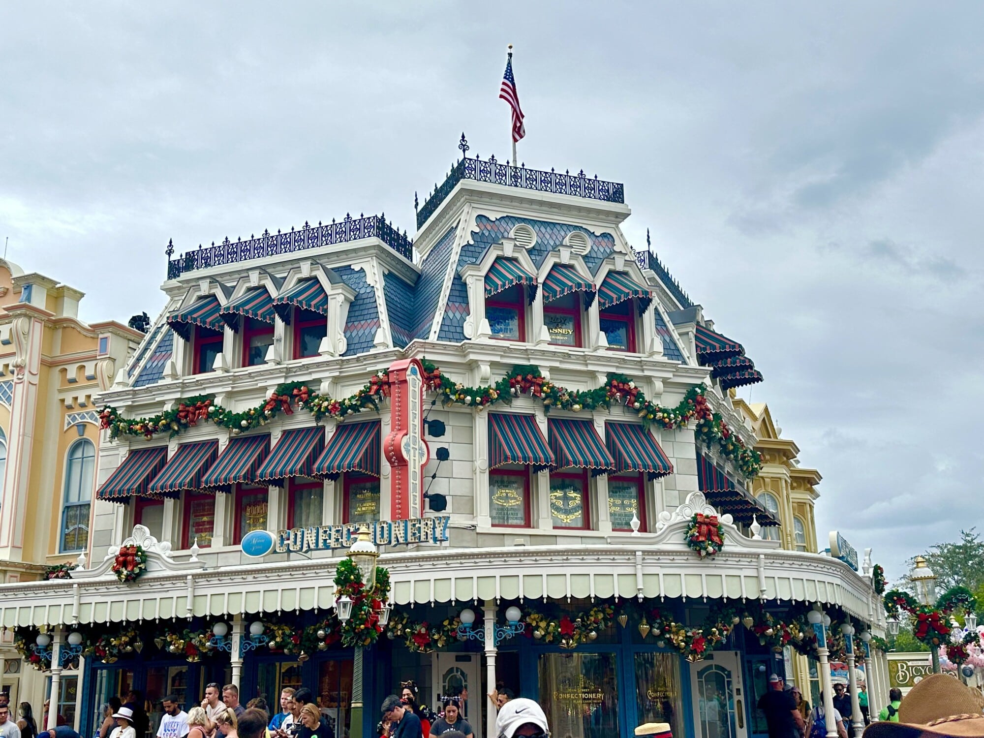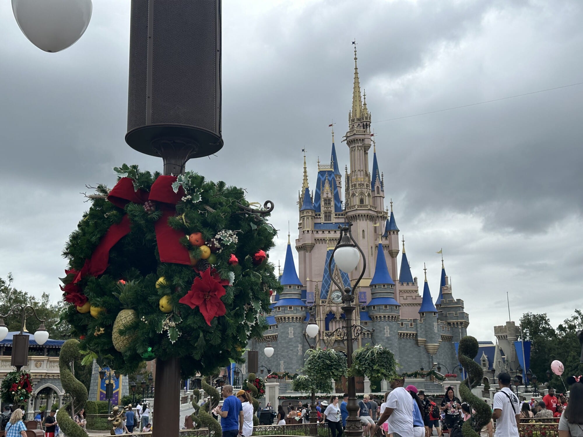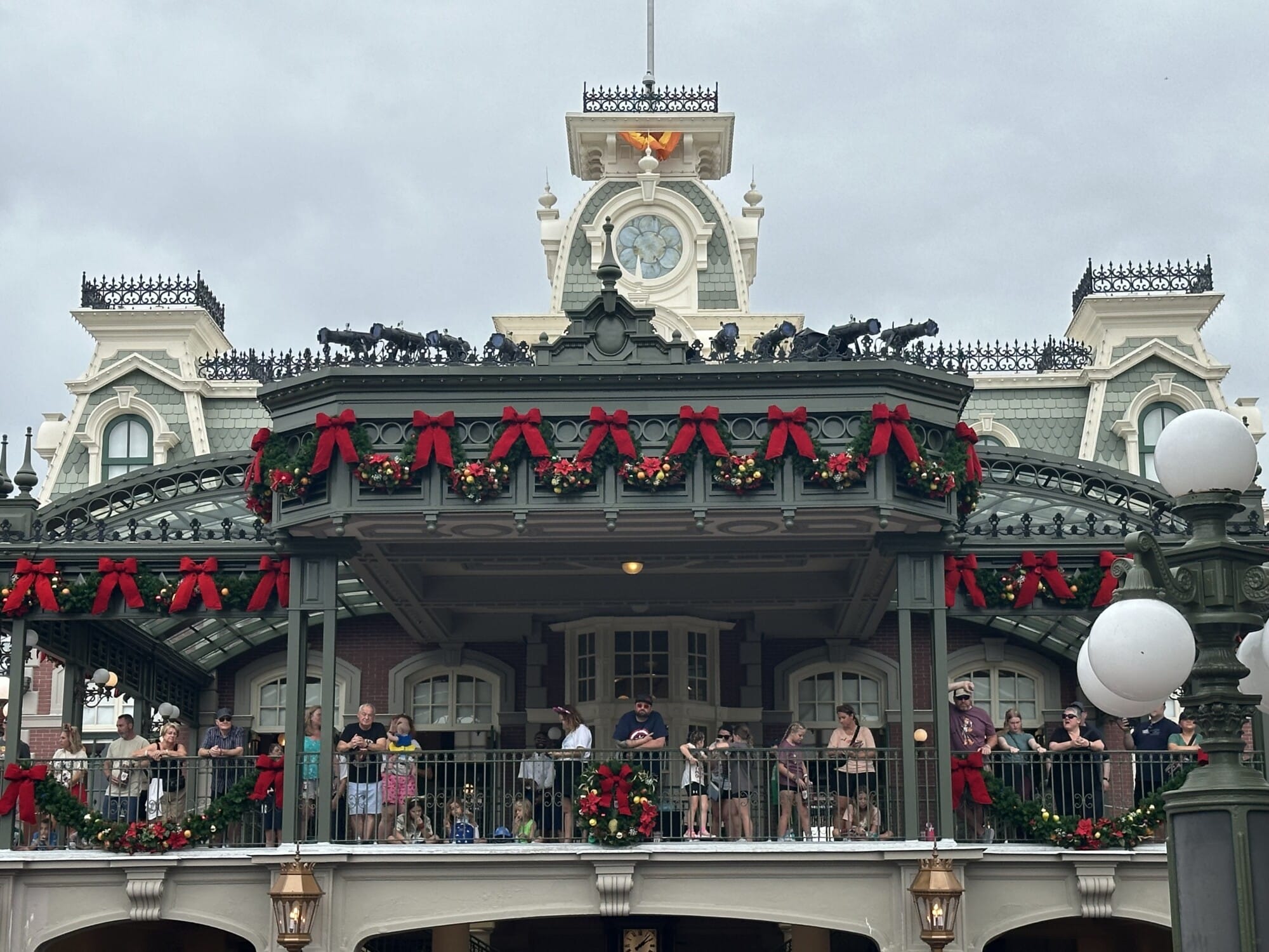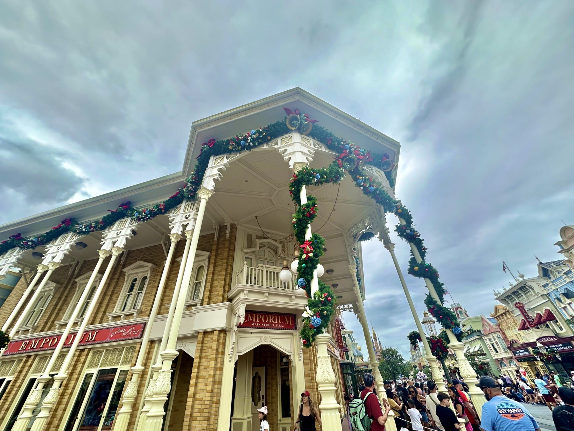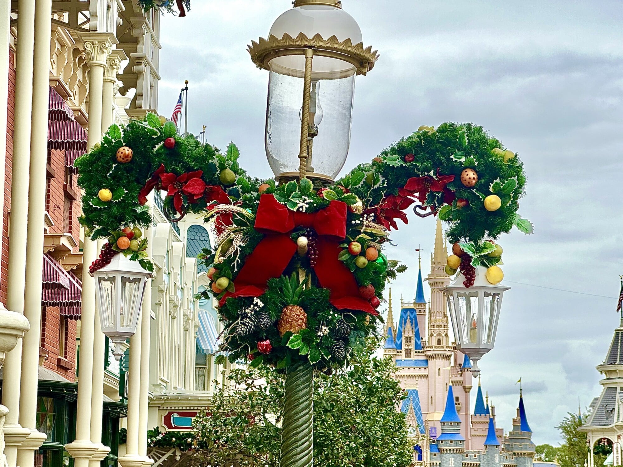 Halloween is officially over! The last Mickey’s Not So Scary Halloween Party was just last night, but we all know how Disney operates! Christmas decorations are now up at Magic Kingdom and they are beautiful as usual. When you walk into the park, you can’t help but be overwhelmed with the magic of the holiday season. The Mickey Pumpkins have been replaced with beautiful wreaths, Main Street and the train station are decked out as well. Here’s a look at the decorations that are now there!